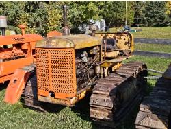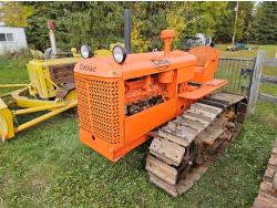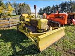Open station, 6 cylinder Oliver/Cletrac/Hercules diesel engine, 4 speed manual transmission, stored indoor, ran when parked, drawbar, 16 inch track pads, single grousers