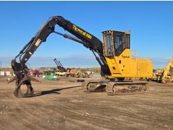 A/C, air ride seat, joystick steering, 2 position station, 17.5 sq ft grapple, positive air shutoff, Espar engine heater, cab screens, sweeps, 116" front decking blade, extended fuel tank, 35.5-32 Firestone forestry tires with chains