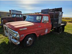 4 cylinder gas engine, 4 speed manual transmission, 87832 miles, 2WD, 14 inch tires, 1970 frame and chassis no engine, 65124 miles, 235/75R15 tires.