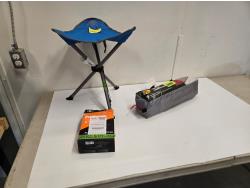 7331 Tripod Chair, Hiker's Tent, Binoculars
