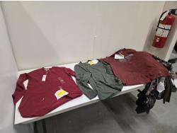 (2) small sweaters, (1) L tee shirt, (1) XL tee shirt, (1) 3XL tee shirt, (1) 2XL tee shirt, (1)XL sweater, Bass Pro Shop Return, Items are sold as is and may have defects or missing parts, Personal inspection is advised