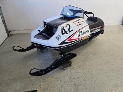 700 cc 2 cylinder 2 stroke liquid cooled engine, high rise handlebars, 136 inch long track, 15 inch wide track, 2 inch paddles