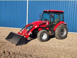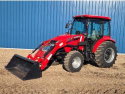 Case IH 360A loader, Q/A, 72 inch bucket, mid mount hydraulic connection, FPT 2.2 L 3 cylinder 54 HP, diesel engine, 43 PTO HP, hydro 3 range transmission, cab, rear differential lock, A/C, radio, heater, 3 point hitch, 2 rear hydraulic outlets, rear wheel weights, 12-16.5 front tires, 17.5L-24 rear tires