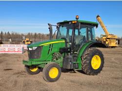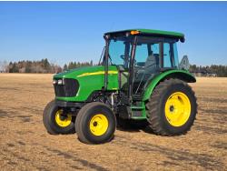 Deere 4.5 L 4 cylinder 89 HP, engine, DEF required, 75 PTO HP, 16 speed Power Shuttle partial synchro transmission, cab, left hand reverser, A/C, radio, 540 / 540E PTO, 3 point hitch, 3 point hitch exterior control, 3 rear hydraulic outlets, 3 function mid mount valve with joystick, 19.5L24 rear tires