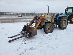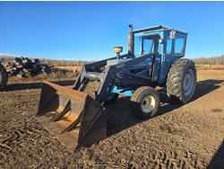 Ezee-On 80-90 loader, 72 inch bucket, Ford 4.2 L 4 cylinder 96 HP, diesel engine, 84 PTO HP, 8 speed manual transmission, cab, 540 PTO, 3 point hitch, 3 rear hydraulic outlets, 10.00-16 front tires, 18.4-34 rear tires