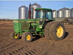 John Deere 4.5 L 4 cylinder 81 HP, diesel engine, 65 PTO HP, 9 speed partial synchro transmission, cab, A/C, radio, 540 PTO, 3 point hitch, 2 rear hydraulic outlets, 11.00-16 front tires, 16.9-30 rear tires