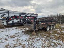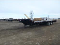 102 inch wide deck, 60 inch beaver tails, wood deck, flip over with spring assist ramps, electric brakes, torsion suspension, ball hitch, tool / storage box, rub rails, stake pockets, LED lights, trailer is in as new condition, approximately less than 5000 km on it, tandem jacks, MONSTER ramps, 12,000 lb axles with oil bath bearings, 235/80R16 tires