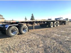 102 inch wide deck, 32 ft lead length, 28 ft pup length, wood deck, stake pockets, tool / storage box, air brakes, spring suspension, 11R24.5 tires