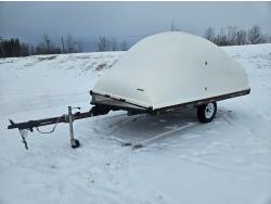 8 ft wide, spring suspension, electric brakes, factory extended hitch, fits up to 165 inch sleds, 205/75R15 tires