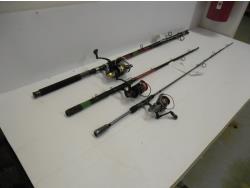 mini tackle box with fly's, Cabela's Pencil Bouncers, Telescopic Rod with reel, Extreme Stk with reel (missing top half of rod), Quantim Rod with reel, graphite series rod