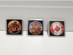includes (1) USA buffalo coin, (1) USA liberty coin, (1) Canada steelhead coin