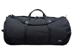 Style 523, Canvas w/ heavy PVC lining, carry straps, end handles, boot ties, removable shoulder strap w/ metal components (large bag only), large coil zipper & button closure, clear PVC ID pocket, size 36” x 18”, capacity 150 liters