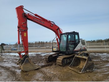 Enclosed cab, manual coupler, hydraulic thumb, 10 Ft stick, 31.5 inch track pads, triple grousers