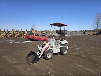 Open station with canopy, 739cc gas engine, 3 speed manual transmission, 40 inch smooth bucket, 23-8R12 tires
