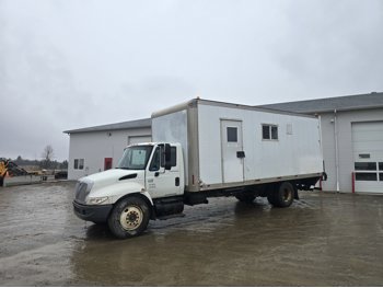 International DT570 9.3 L diesel engine, engine brake, positive air shutoff, Allison automatic transmission, A/C, cruise control, air ride driver seat, stereo, hydraulic wet kit, steel tool boxes, hydraulic winch, PTO pump, 14,000 lb front axle, 40,000 lb rear axles, diff lock, this truck was bought new and are very low kilometers, they are perfect wheel base for grain box, delivery van or flat deck, hyd pump already mounted on the unit, decks are easily removeable , 11R24.5 tires