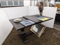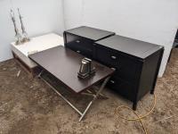 Tables, (1) 27.5 inch X 27.5 inch X 17 inch high, (1) 20.5 inch X 62 inch long X 16 inch high