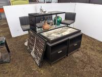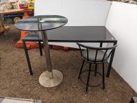36 Glass Table, (3) Barber Style Chairs, Two Drawer Cabinet