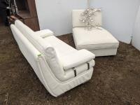 46 White Leather Couch & Lounger, (2) Wall Decorations