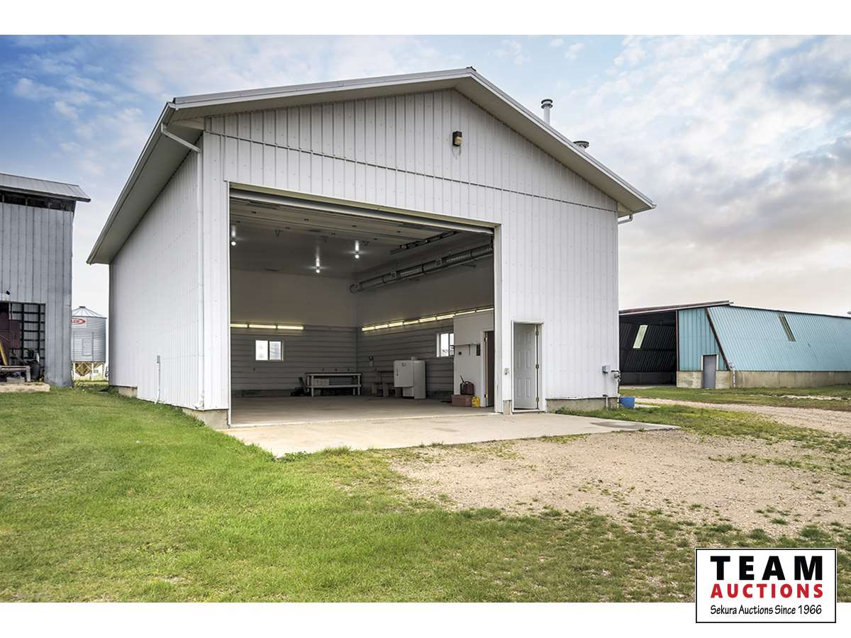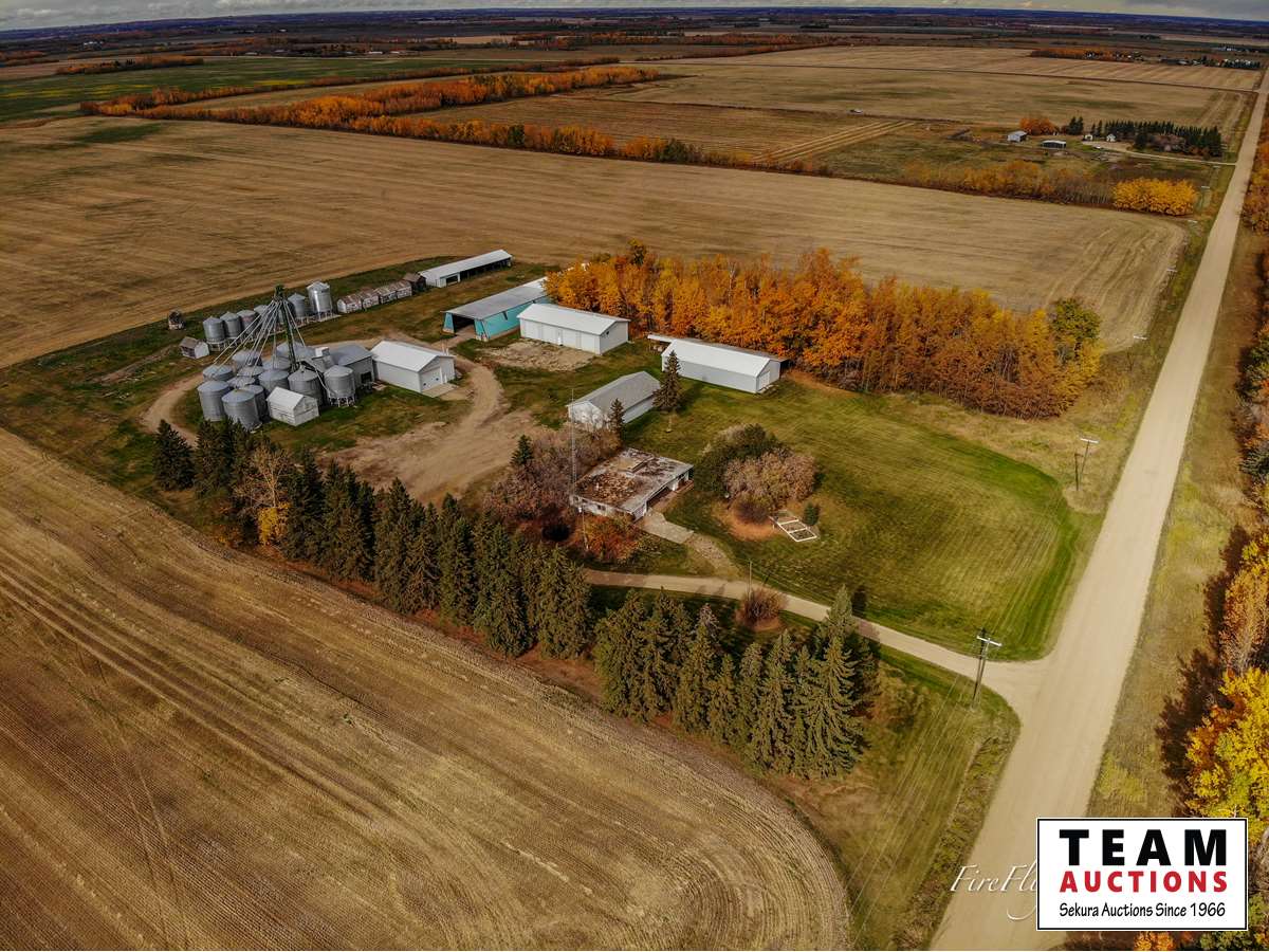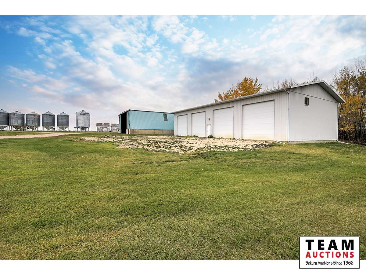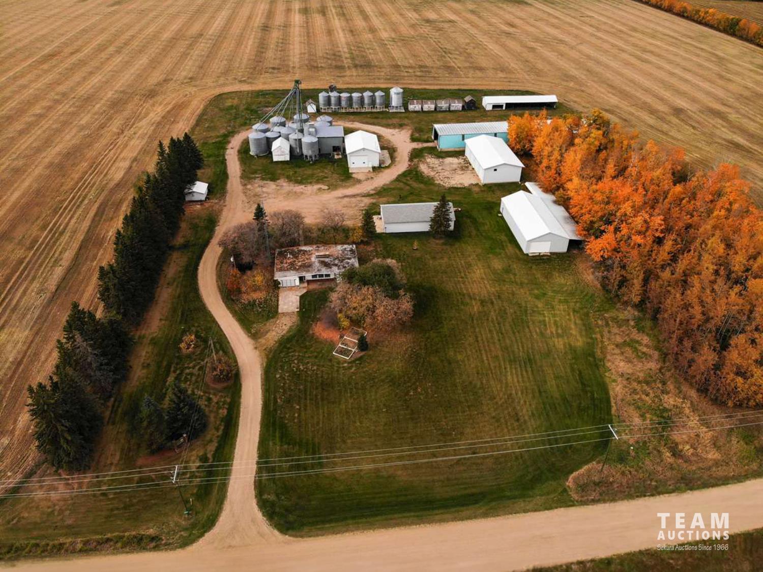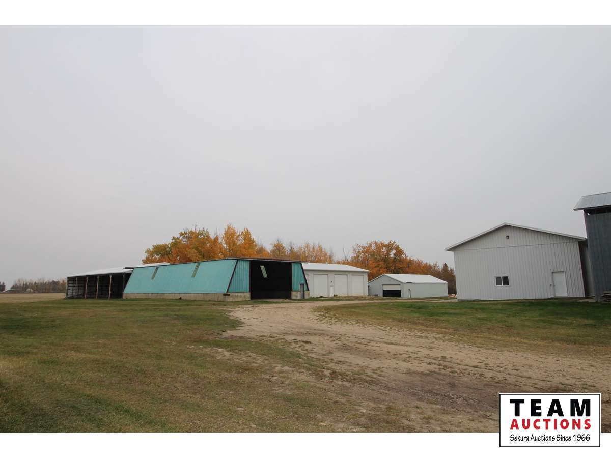1800± sq ft home with single heated attached garage, fully developed basement, (4) bedrooms, (3) bathrooms, 34x64 heated shop (2) 10 Ft doors, air compressor, 34 x 50 heated shop (1) 14 Ft door, air compressor, & steam washer, 36 x 80 metal clad cold storage building, 12 Ft door (dirt floor), 40 x 80 metal clad cold storage building, (4) 14 Ft doors (gravel floor), 48 x 96 steel frame cold storage building (gravel floor) w/ attached 40 x 100 open faced machine shed (concrete floor), 26x100 open faced machine shed, MC 975 continuous grain dryer & grain handling system, natural gas, power, drilled water well, surface discharge septic system, 141.3± cult acres, barley 2021, canola 2020, remainder yard site, Rge Rd 10 road access