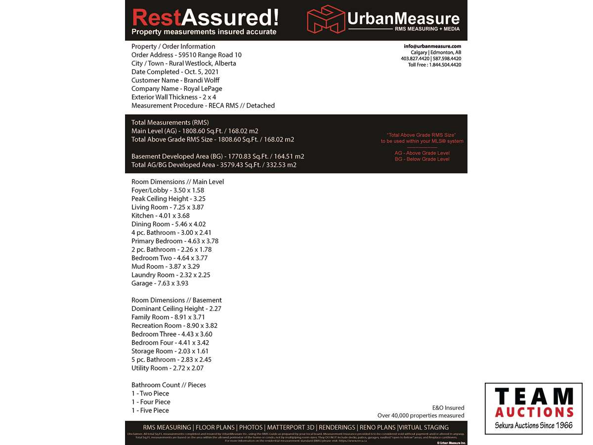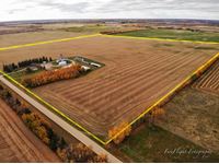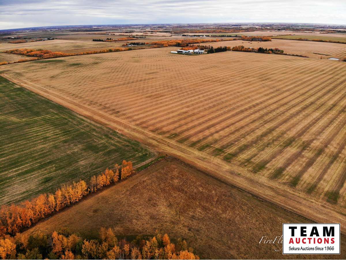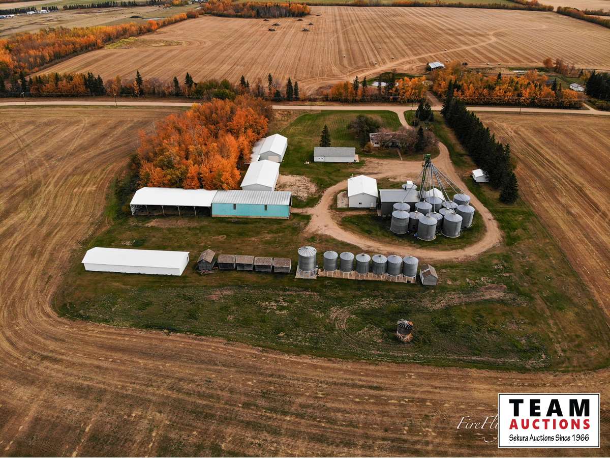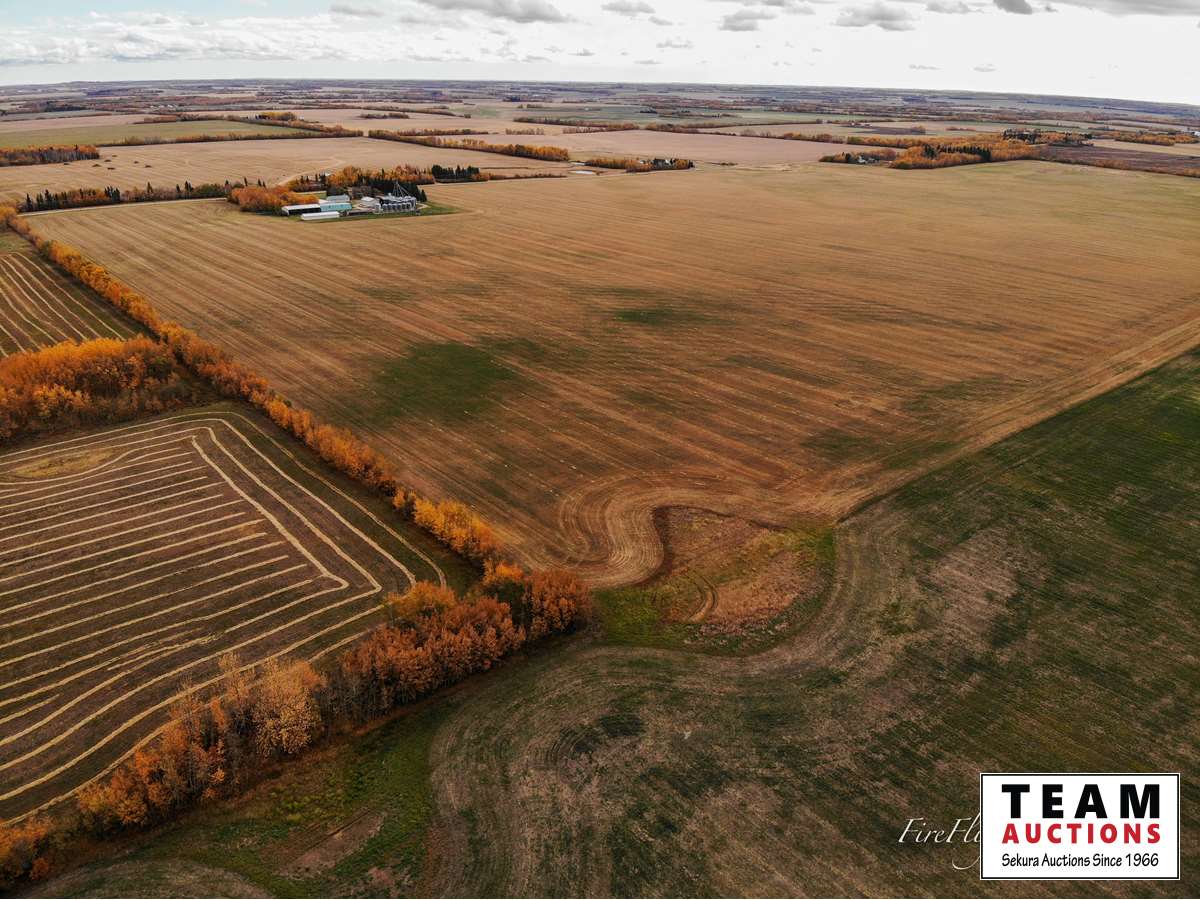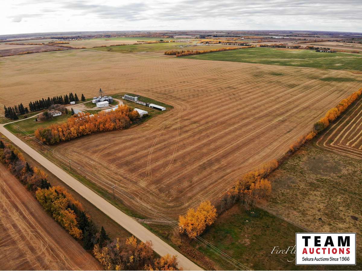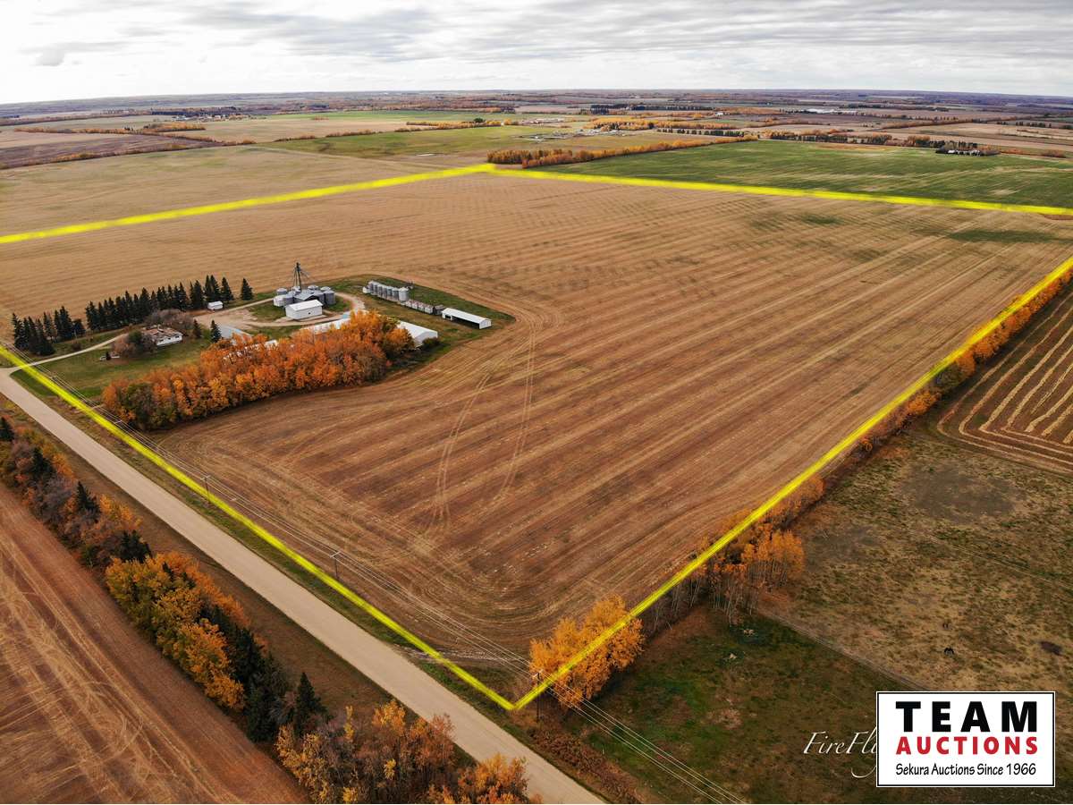 1800± sq ft home with single heated attached garage, fully developed basement, (4) bedrooms, (3) bathrooms, 34x64 heated shop (2) 10 Ft doors, air compressor, 34 x 50 heated shop (1) 14 Ft door, air compressor, & steam washer, 36 x 80 metal clad cold storage building, 12 Ft door (dirt floor), 40 x 80 metal clad cold storage building, (4) 14 Ft doors (gravel floor), 48 x 96 steel frame cold storage building (gravel floor) w/ attached 40 x 100 open faced machine shed (concrete floor), 26x100 open faced machine shed, MC 975 continuous grain dryer & grain handling system, natural gas, power, drilled water well, surface discharge septic system, 141.3± cult acres, barley 2021, canola 2020, remainder yard site, Rge Rd 10 road access