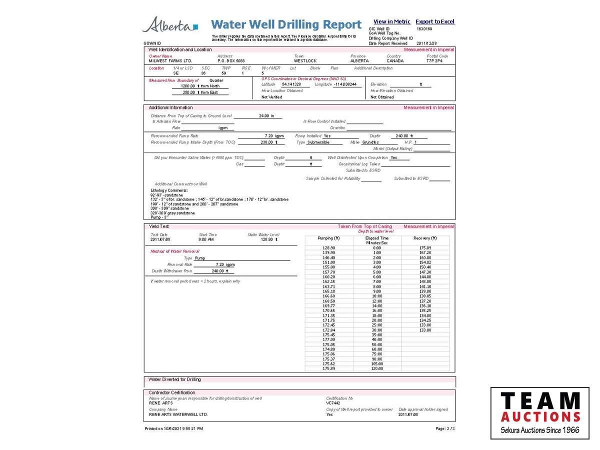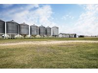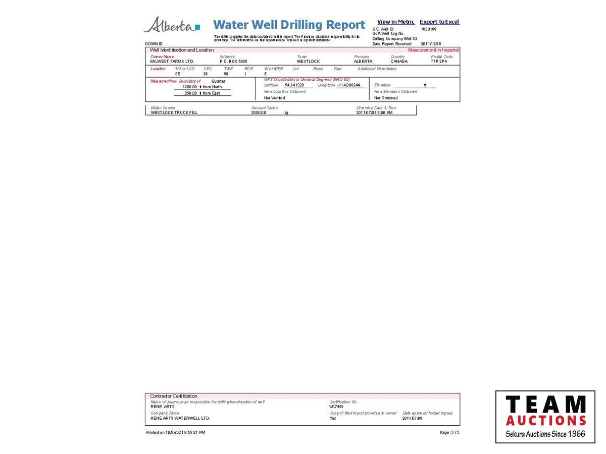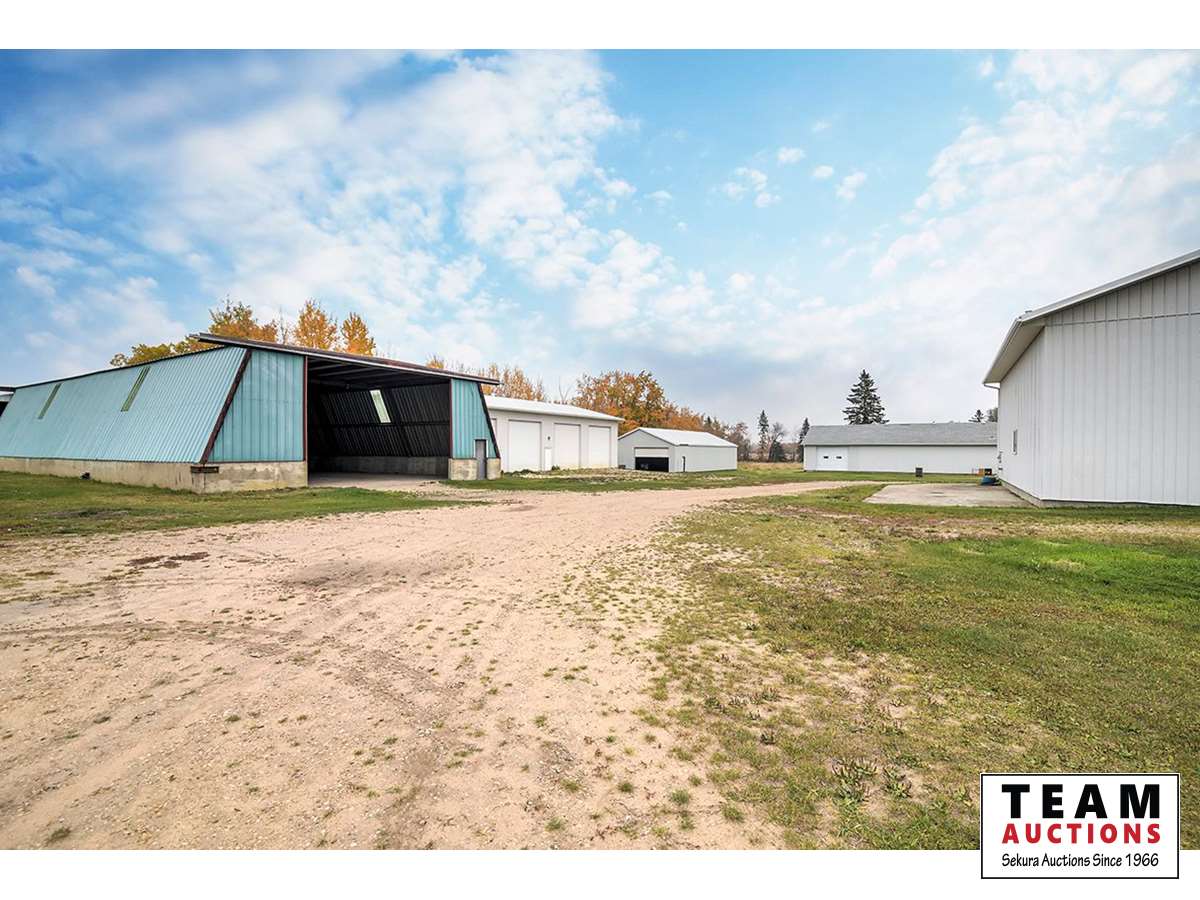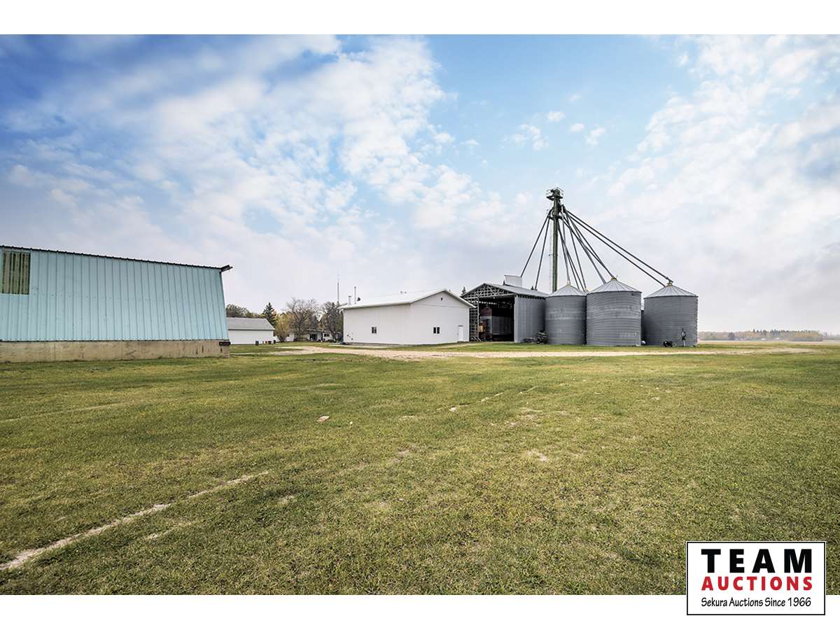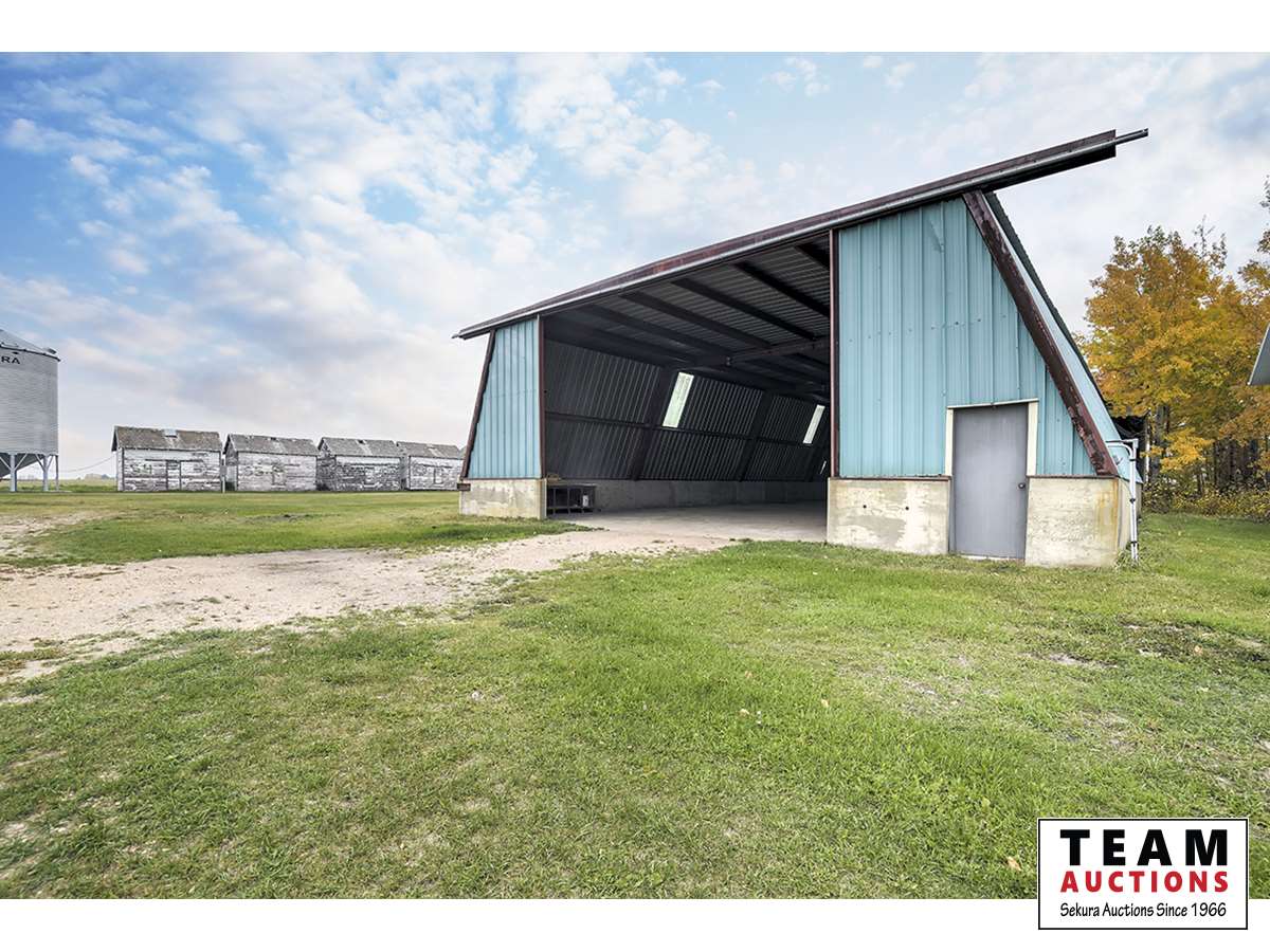 Home 1973 built, 1800± sq ft (4) bedrooms, (3) bathrooms Main floor laundry Stucco exterior, tar and gravel roof Hot water base board heating New HE boiler last year, HWT 2015 Carpet & linoleum flooring Main Floor Large rear porch w/ 2 pce bath & laundry room w/ sink Open concept kitchen & dining area w/ U shaped kitchen, island w/ power, counter top electric range, BI oven, & access to dual sided wood burning fireplace Bright living room w/ A-frame style windows, dual sided wood burning fireplace, front door access & closets, & attached garage access 2 large bedrooms w/ double closets 5 piece main bath w/ double sinks Developed Basement 2 large bedrooms 5 piece bath w/ double sinks Large family room w/ dual sided wood burning fireplace Mechanical room w/ gas stove (used for canning) & well system Attached Garage Single Vehicle Heated Outbuildings 34 x 64 Ft, insulated, heated w/ in floor heat & HE boiler, concrete & small portion wood floor, portion used for paint room w/ exhaust, bolt bins, air compressor, (2) 10’ high doors, shingled roof 34 x 50 Ft, insulated, heated, concrete floor, mechanical room w/ steam washer & exterior concrete washing apron, air compressor, 14 Ft door, tin roof 36 x 80 Ft, metal clad cold storage building w/ 12 Ft doors on each end, dirt floor, tin roof 40 x 80 Ft, metal clad cold storage building w/ (4) 14 Ft doors, gravel floor, tin roof 48 x 96 Ft, steel frame cold storage building, concrete floor, 48 x 100 Ft open faced machine shed attached at rear 26 x 100 Ft open faced machine shed Grain Handling System MC 975 Continuous Grain Dryer & leg grain handling system, 4-Westeel bins on hoppers, 2-Butler bins on hoppers, 1-Viterra on Hopper, 8-Weststeel on concrete, 4-Butler on concrete, 1-Superior on hopper, 7 older wood granaries Utilities Power, natural gas 2011 drilled water well (400 Ft deep, 7.2 gals per minute registered at time of drilling) Above ground septic discharge system