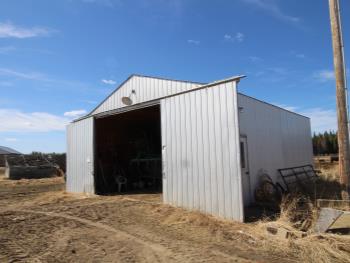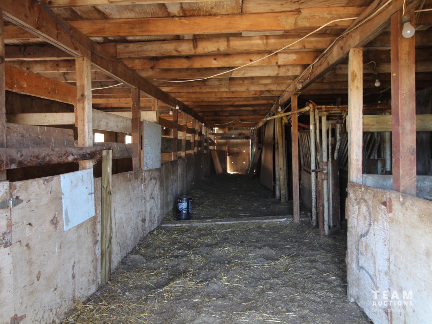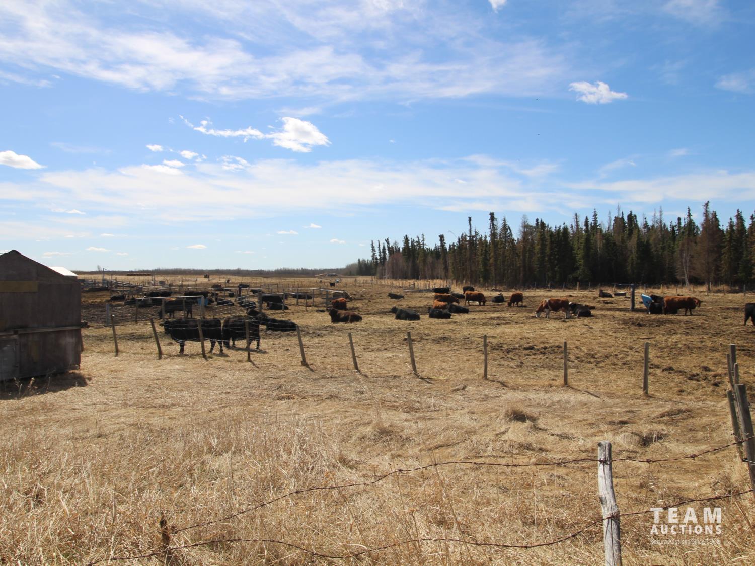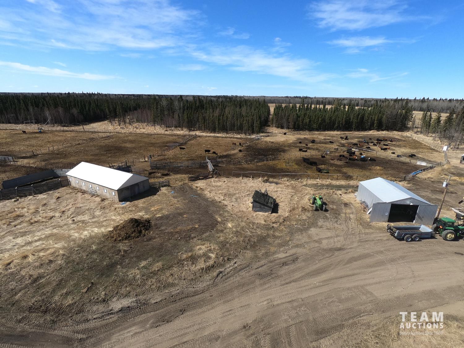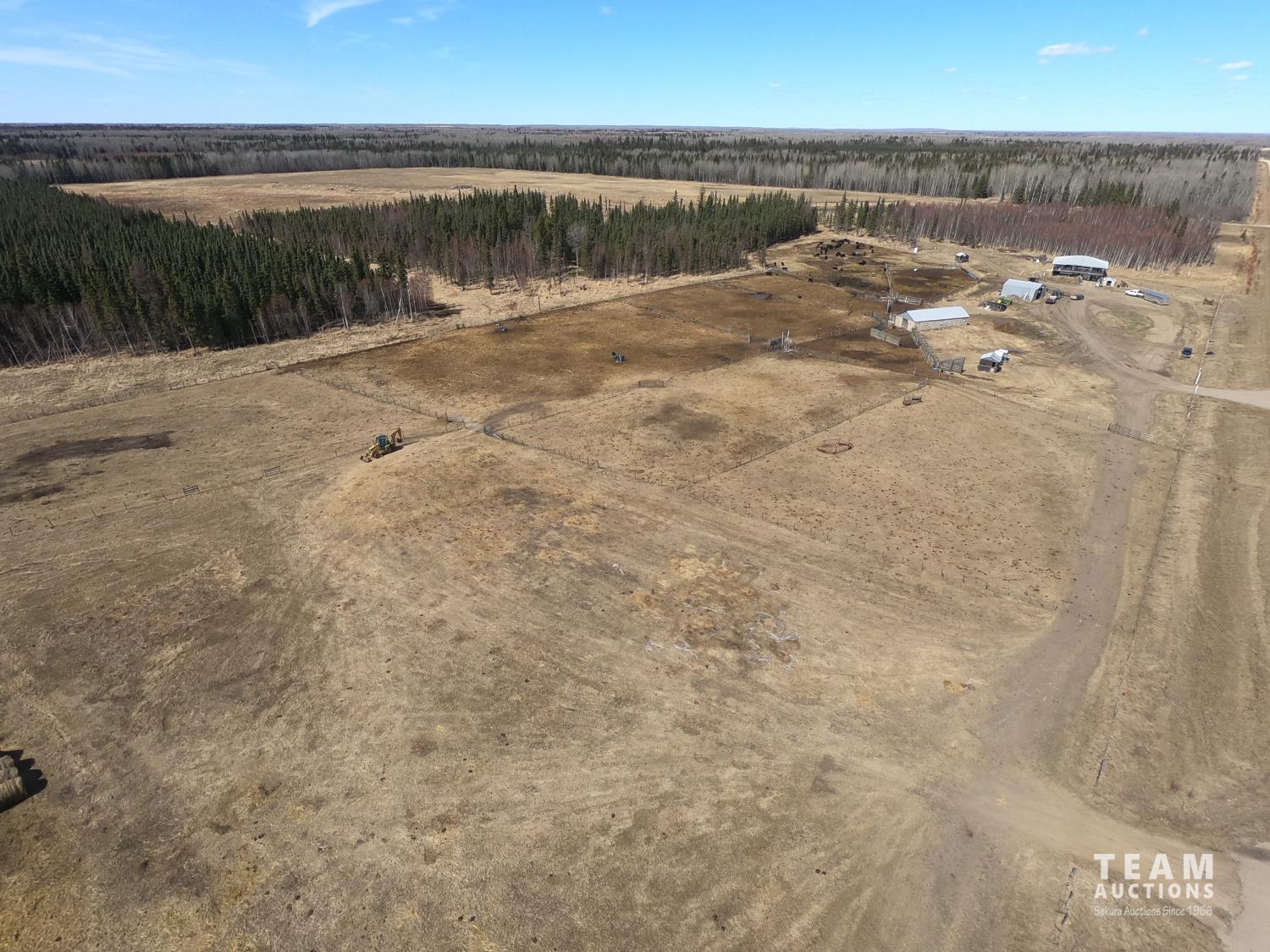 1328± sq ft hillside walk out home, 3 bedrooms on main level, 1-4 piece bath, 24x32 ft metal clad shop (no floor), 24x56 ft concrete form barn with interior stalls, cattle pens & auto waterer, natural gas, power, bored water well, surface discharge septic system, approx. 20± cult acres, approx. 50± acres of pasture with large dug out, remainder treed and yard site, Hwy 827 access, taxes $1070.91.