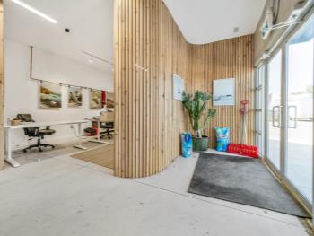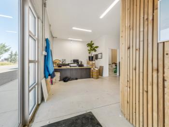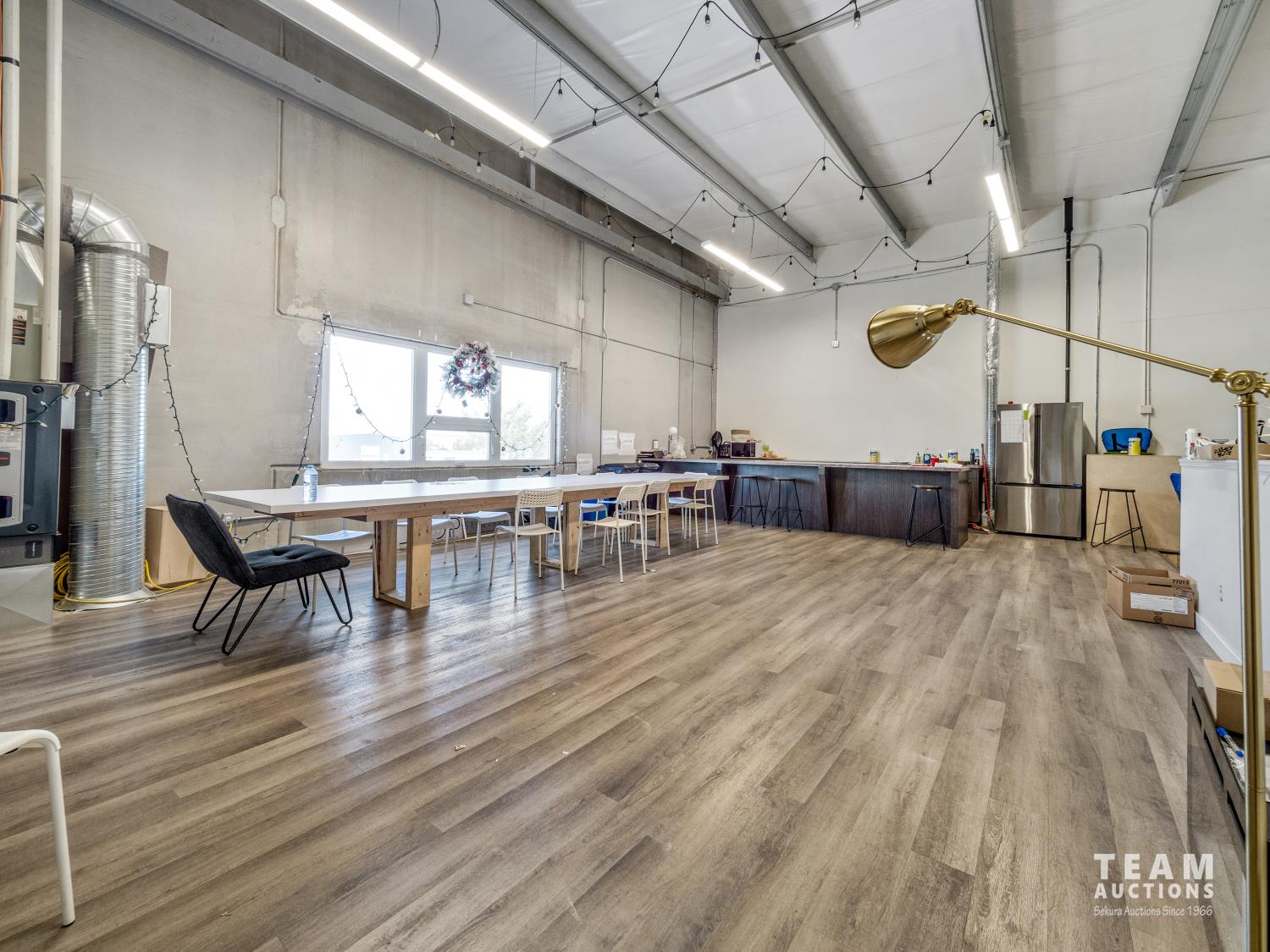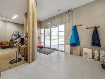 Commercial Building 9,998± sq ft ext Concrete foundation walls on strip footings Structural steel framework Reinforced concrete structural slabs Approx 24 ft clear height Pre-cast concrete panels Commercial double-paned glass in aluminum frames Rooftop HVAC units, radiant units in warehouse areas 400 amp service with 100 amp splinter boxes Fluorescent fixtures Wet sprinkler system Grade loading only On-site paved parking Fenced yard