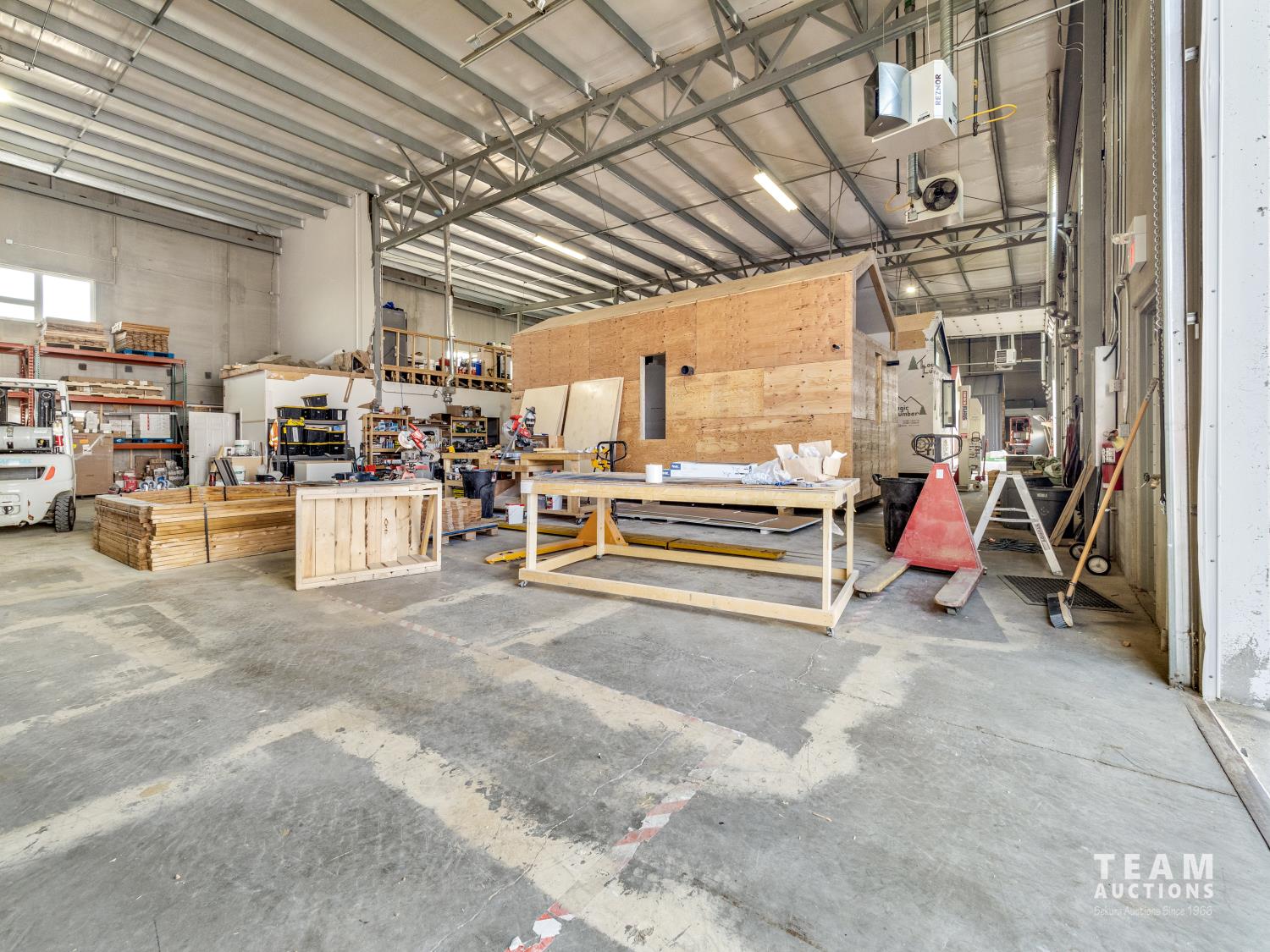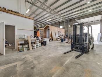 Commercial Building 10,996± sq ft ext Concrete foundation walls on strip footings Structural steel framework Reinforced concrete structural slabs Approx 24 ft clear height Pre-cast concrete panels Commercial double-paned glass in aluminum frames Rooftop HVAC units, radiant units in warehouse areas 400 amp service with 100 amp splinter boxes Fluorescent fixtures Wet sprinkler system Grade loading only On-site paved parking Fenced yard