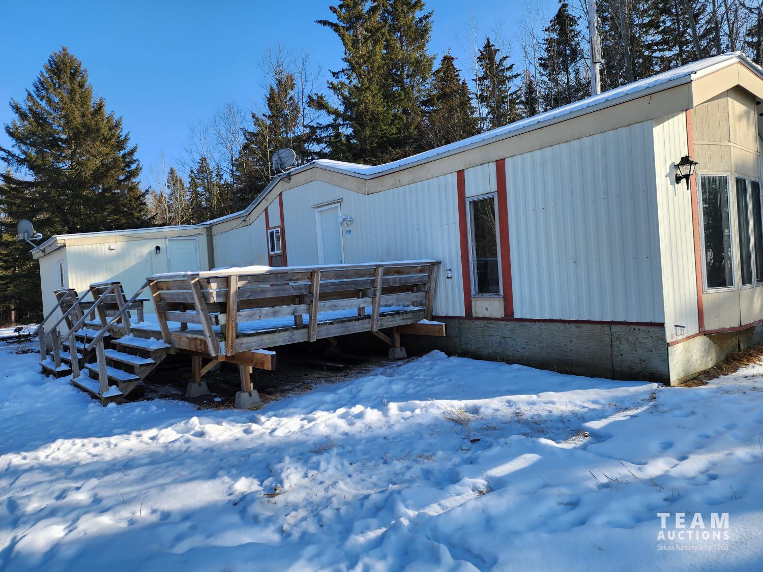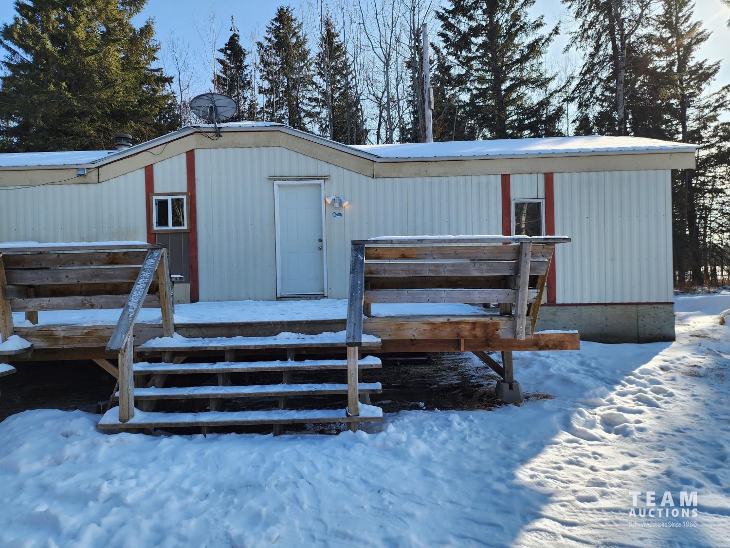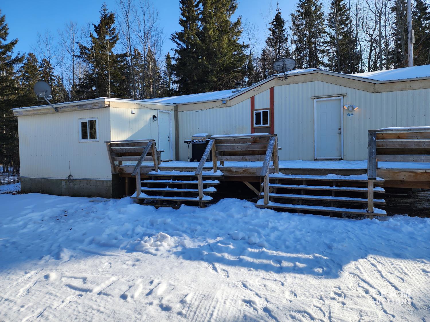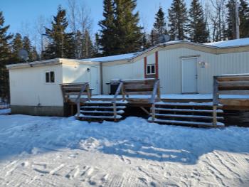 4.99± acres with 3 bedroom 66 x 16 (1056 sq ft) manufactured home. Long winding driveway through the trees provides privacy from RGE RD 72.