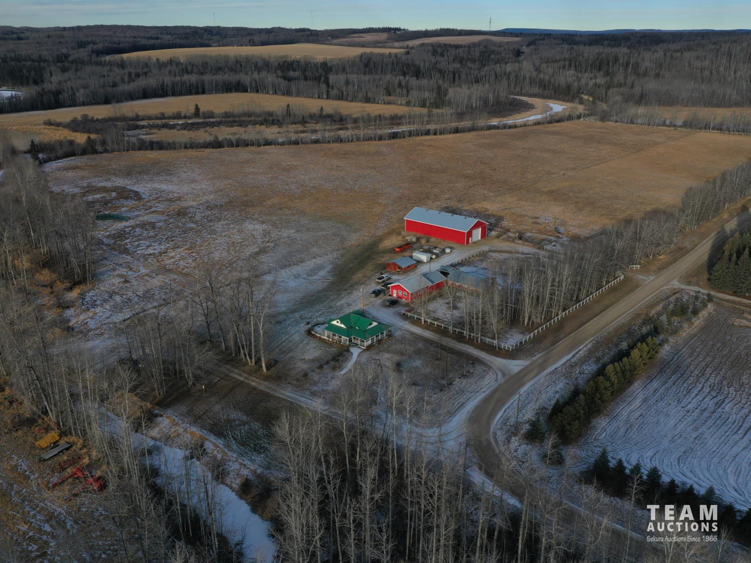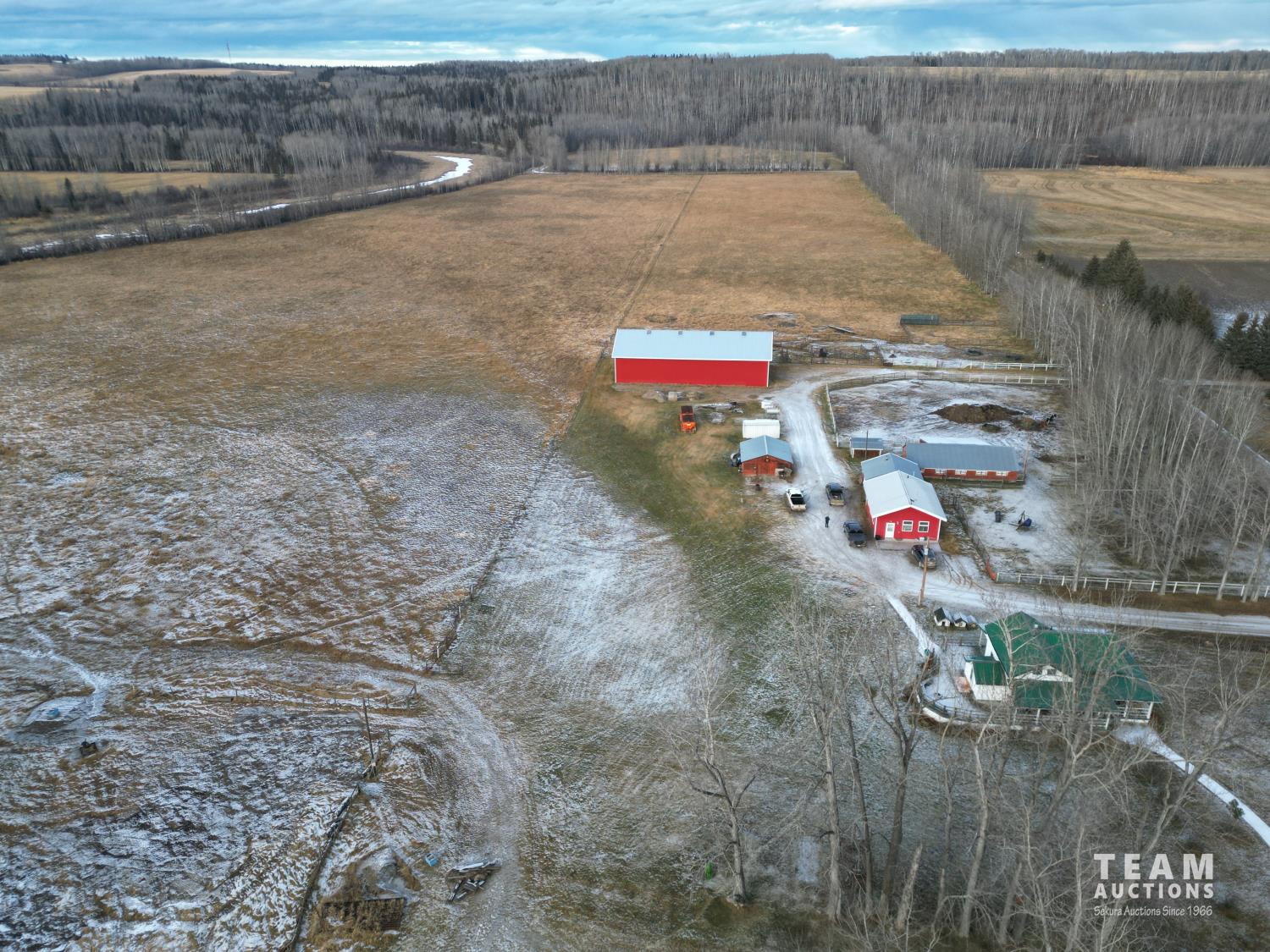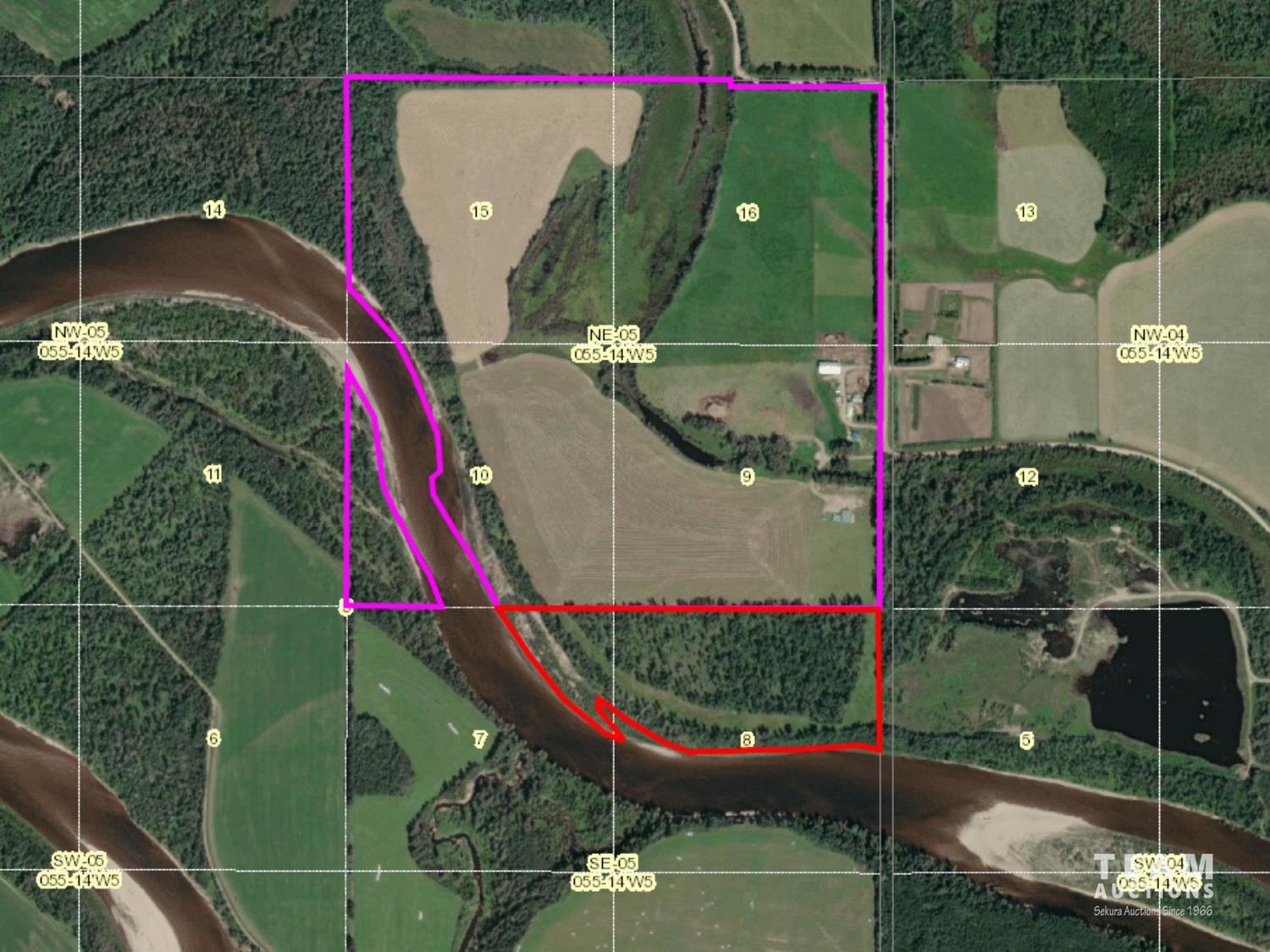 Riverfront land with 152.04± deeded acres (55022 RR 144A on Pt NE5-55-14-W5) & 25.5± acre long term grazing license (FGL 950012) on SE5-55-14-W5. Developed farm site with home, barn, workshop with living quarters, welding shop and large enclosed metal clad pole shed.