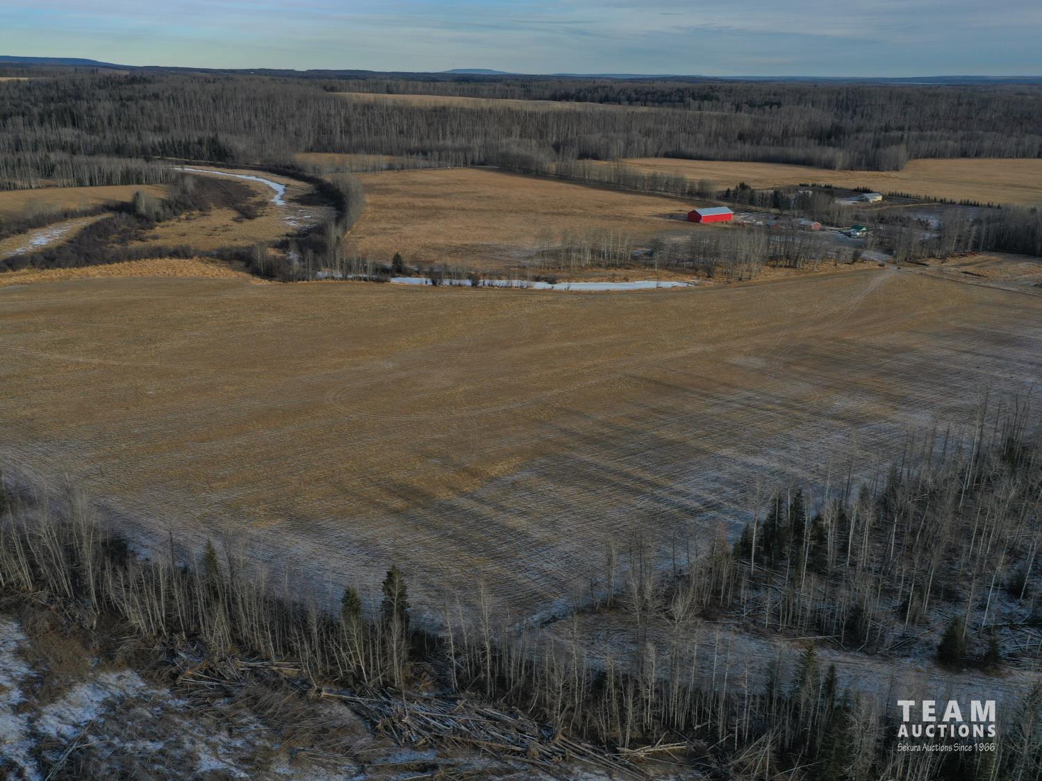 Riverfront land with 152.04± deeded acres (55022 RR 144A on Pt NE5-55-14-W5) & 25.5± acre long term grazing license (FGL 950012) on SE5-55-14-W5. Note a portion in the south west corner of deeded land is severed from balance of deeded land by the MacLeod River. MacLeod River flows through the deeded land and borders FGL 950012. Land is fenced and has some cross fencing. Some repairs will be required. Hay/pasture land with creek flowing through. Fish from the shores of MacLeod River! Developed farm site with home, barn, workshop with living quarters, welding shop and large enclosed metal clad pole shed. Hydrants and auto waterers.