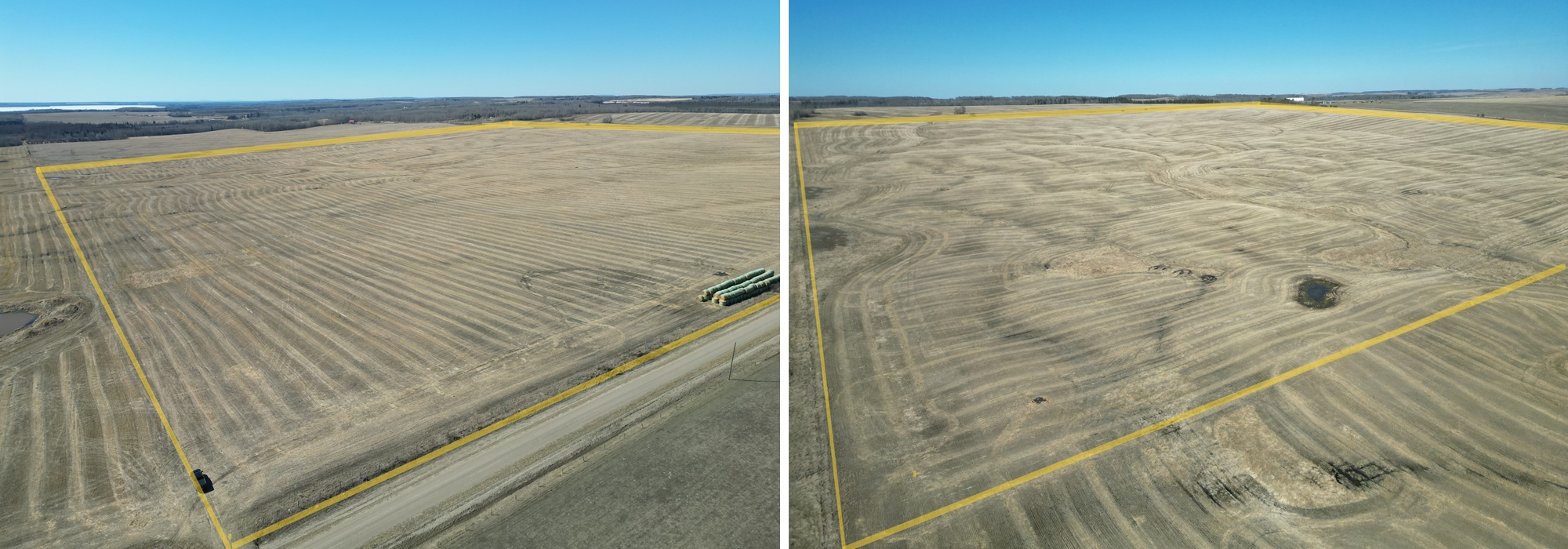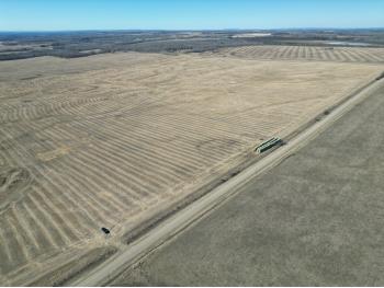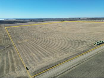 Straw bales are not included in the property sale, they will be sold in a separate sale. The land is not seeded for this year but if you are the buyer and the purchase contract is signed, and deposit is received you can have access to the land for fieldwork.
