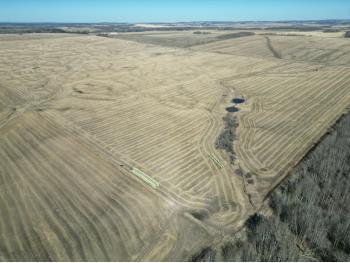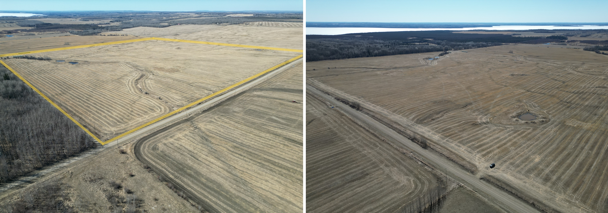 Straw bales are not included in the property sale, they will be sold in a separate sale. The land is not seeded for this year but if you are the buyer and the purchase contract is signed, and deposit is received you can have access to the land for fieldwork.