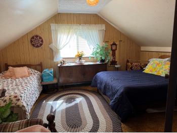 Cozy 3 bedroom home - 1 bedroom/1 four piece bath on main floor and 2 bedrooms/2 piece bath on upper level. Main floor also features country sized entry, kitchen, dining, living room. The living room has patio doors and wood stove. The galley kitchen has built in oven, counter top electric stove, Fridge & microwave. Main floor 4 piece bath has been updated. Upstairs are two spacious bedrooms with closets,. One has patio doors & safety bar. 2 main storage closets on landing and attic storage as well. The full unfinished basement is constructed of 8x24 dual blocks filled with concrete. There are vinyl windows with window wells. Exterior of basement has been finished with 2 coats of weather proofing, wrapped with matting and covered with preserved plywood. A quantity of 3x6x10 timbers, 32 sheets of 8 ft drywall &