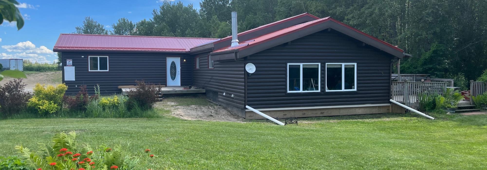 Fantastic hobby farm property comprised of 68.23 +/- acres with fenced pasture, small dugout & animal shelter, approx. 14 acres of hay, 3 acres of U-Pick raspberries & saskatoons, remainder bush & yard site. Rustic 1750 sq ft home with 4 bdrms & 3 baths. Enter the home through side entrance & covered deck. 3 pce bath with main floor laundry. Open concept kitchen/dining/ & living room area with impressive vaulted ceilings. Living room has stone faced wood fireplace with Kingsman insert & patio doors to side deck. L shaped kitchen with white appliances & ample amount of cabinets, large walk in pantry. Off the kitchen are two bedrooms. Down the hall you will find a room to house deep freeze & larger kitchen appliances, 2 pce bath, bedroom w/ walk in closet & master. The master having a large walk-in closet & 4 pce ensuite with stand up shower & air tub. Downstairs you will find partially finished family room, storage room, cold room & mechanical room which houses furnaces, hot water on demand, & water well pressure system. Home has 22x24 attached garage insulated and finished inside. The original portion of the home is a 1970’s model which was moved to this property in 2004 and placed on screw pilings (crawlspace access) and there was a 1300 sq ft + addition built and put on the pressure treated wood basement in 2011. Home has mostly vinyl windows, a good metal roof, & split log siding. Plenty of sheds for storage, large vegetable garden, etc. All of this nestled along side paved highway 813 just north of Athabasca.