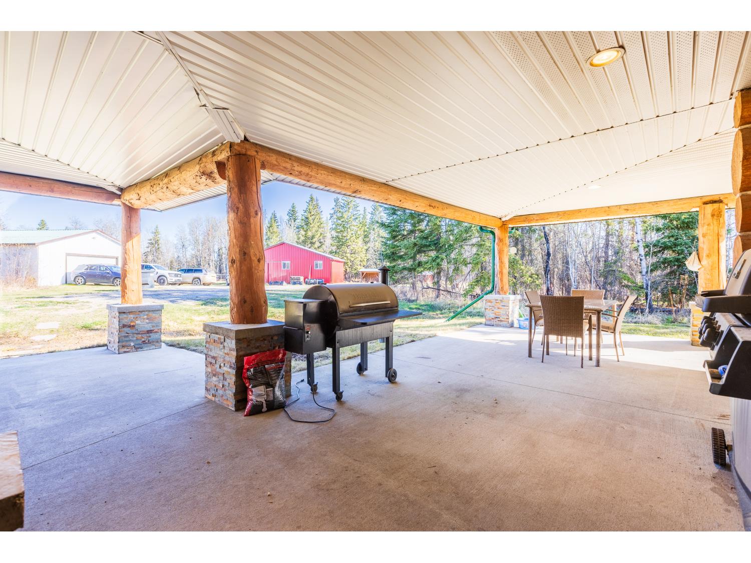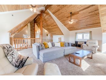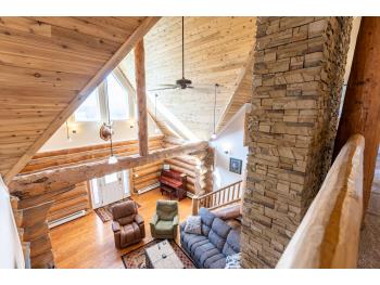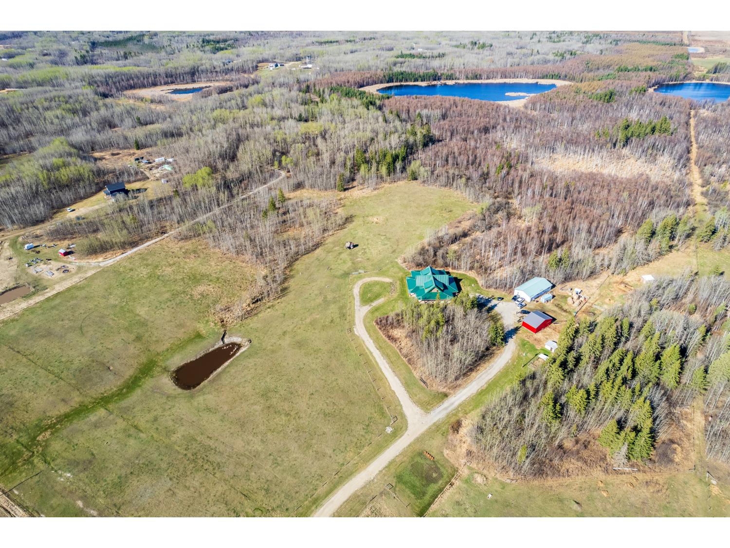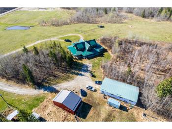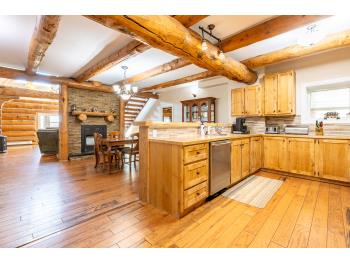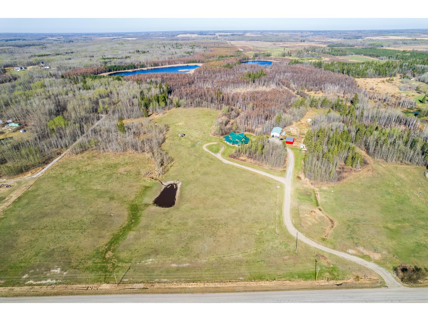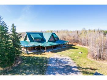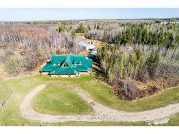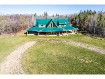 This remarkable 53-acre property sits on a paved road and features an incredible 3,700 sq ft custom log home, built with care and attention to detail by the current owners between 2007–2015. The home blends rustic charm with modern design, including soaring ceilings, massive exposed beams, and oversized windows that flood the interior with natural light and provide beautiful views of the surrounding landscape. The combination of modern finishes creates a warm, inviting atmosphere while offering the comforts of contemporary living. The main floor is approximately 2,000 sq ft and features hardwood floors, an open-concept kitchen, dining, and living area centered around a stunning double-sided wood fireplace, and space for both entertaining and day-to-day family life. A large mudroom, two spacious bedrooms and two full bathrooms complete this level. Upstairs, the 1,700 sq ft upper level is fully carpeted for comfort and includes two more bedrooms, a dedicated office, an additional full bathroom, and a large family or flex room overlooking the main living area below. A wrap-around covered porch encircles the home, offering multiple seating areas to enjoy sunrises, sunsets, or quiet moments in nature. The exterior is finished with a durable metal roof, ensuring low maintenance for years to come. The home is serviced by a drilled water well with a reverse osmosis system and a septic pump-out system installed approximately 10 years ago. A long private driveway winds through the property and leads to the house, with teardrop loops at both the front and back for easy vehicle access. At the rear of the home sits a 30x60 shop—fully insulated and drywalled, with concrete floors and a large overhead door—ideal for equipment storage, hobby farming, or a home-based business. A 24x38 outbuilding offers even more flexibility and could be used for horse stalls, additional storage, or workshop space. Much of the property is fenced with 4-wire strand, making it suitable for livestock. A natural wetland area runs along the back portion, and the land features a mix of open pasture and treed areas, offering both function and privacy. This exceptional property combines natural beauty, modern comfort, and rural practicality.