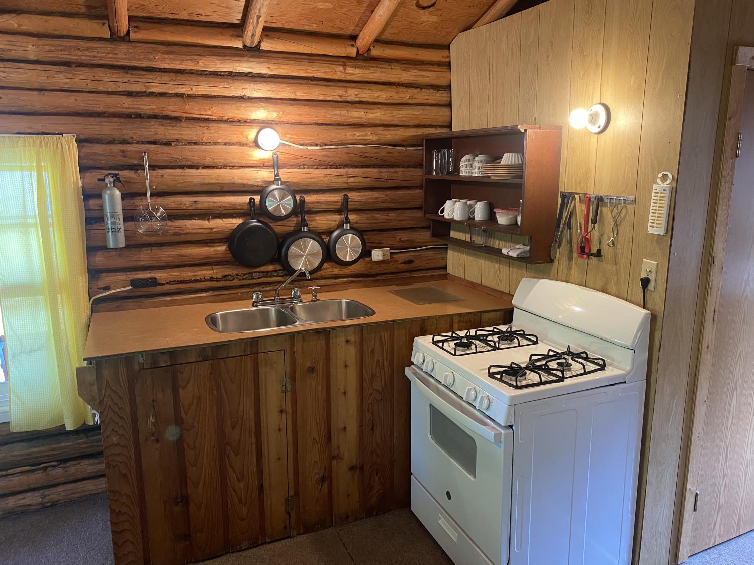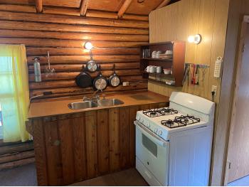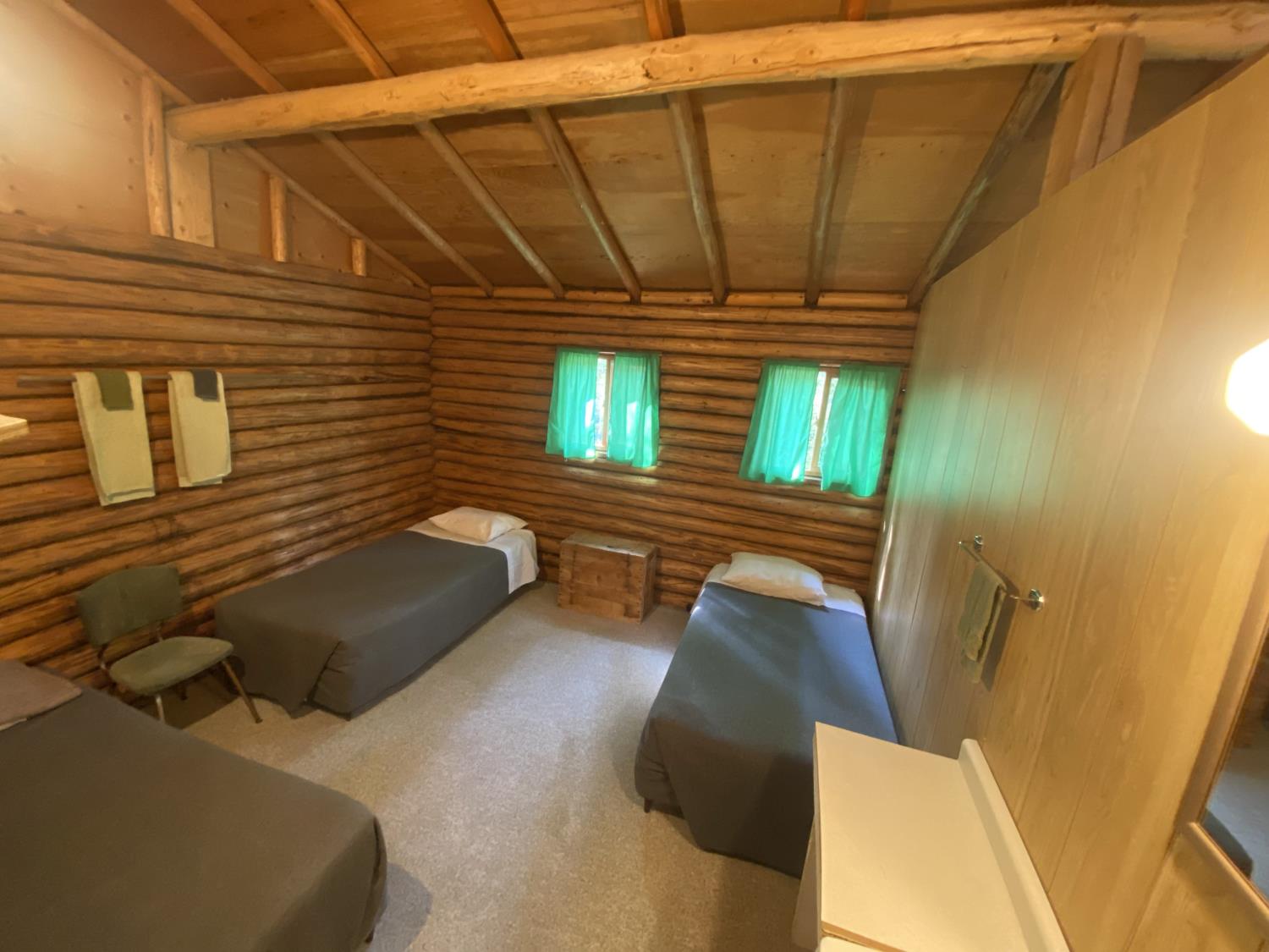 Cabins are built of rustic log in the Northwoods style. Each one faces the lake with windows offering a breathtaking view of the water. All are completely equipped with electric lights, hot and cold running water, oil heat, shower, flush toilet, lavatory and single beds. There is a total guest capacity of 28 and total staff capacity of 7.