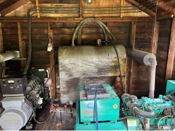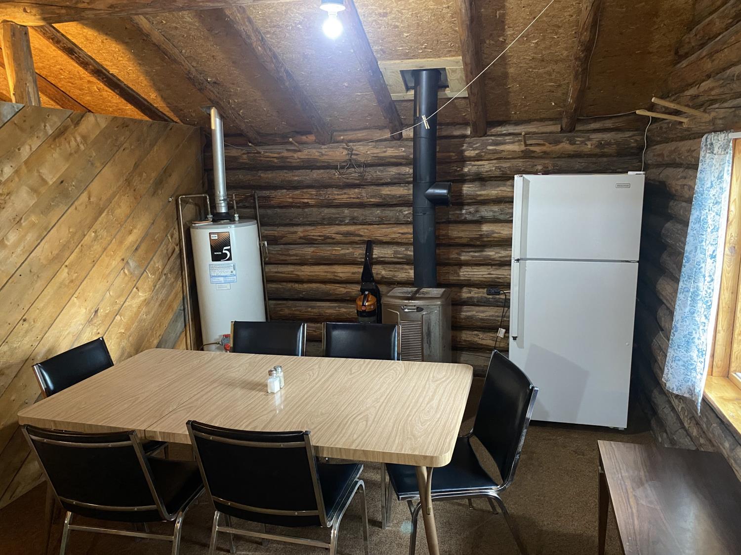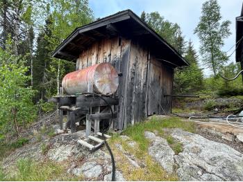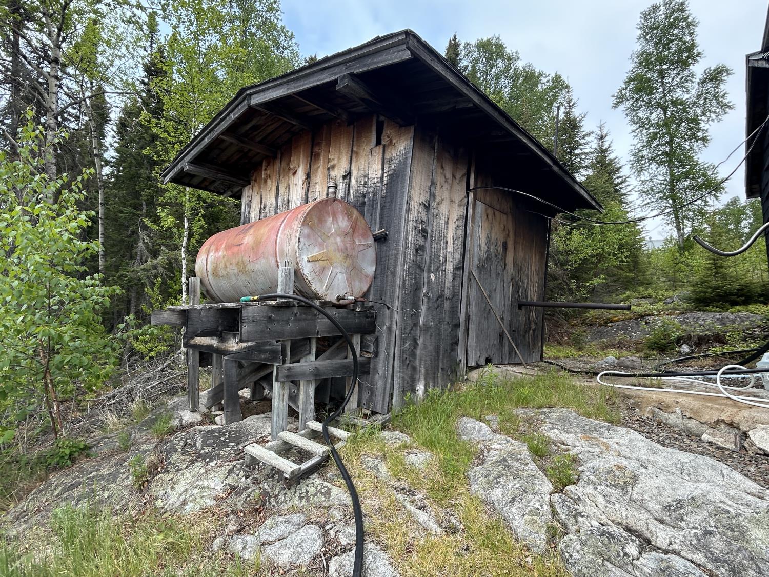 There is fuel storage offsite at North Spirit Lake for Diesel and Gasoline to be accessed by winter road for filling. Fuel is then transported to lodge by boat in drums. Lodge is primarily heated with wood stove and secondary electric heaters. Cabins are heated with oil stoves.