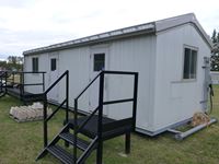 All steel construction with no wood, mounted on steel, skids, (3) gas furnaces, (2) rooms, bathroom, hot water tank, (2) side door entrance, out side steel custom build metal decks