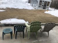 18 6 Plastic Chairs and Side Table