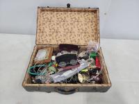 2172 Vintage Suitcase with Various Jewelry and Glasses
