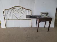 1281 Brass Headboard and Kenmore Sewing Machine in Cabinet