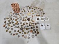 Bag of world coins, silver coins, various old pennies
