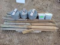 (12) 7 ft Treated Fence Posts, (4) 6 ft Treated Fence Post, (3) rolls 12.5 Gauge Tree Island Barbed Wire, (2) 32 lb Boxes of Fence Staples<br/>