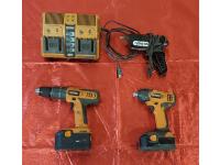 Ridgid Lifetime Warranty 18 Volt Drill, Charger & Battery, Ridgid Lifetime Warranty 18 Volt 1/4 inch Impact & Battery, Bostik Hot Glue Gun, Great Neck 1/2 inch Impact 200 Ft. Lb
