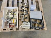 2593 Large Qty of Drill Bits, (5) Clamps, Allen Keys, Travel Iron and Painting Supplies