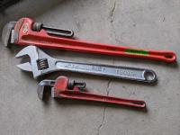 1127 24 Inch Ridgid Pipe Cutter, 24 Inch Pipe Wrench and (2) Regulators