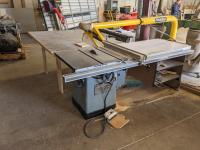 7 ft table, Biesemeyer fence, Excalibur dust collector tube, custom built extension table