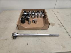 (14) Various sockets from 1-1/4 inch to 2 inch, (1) 3/4 to 1/2 inch adaptor, (1) 3/4 to 1 inch adaptor