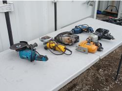 (1) Mastercraft plunge Router, (1) Malita 6 inch grinder, (1) 4inch DeWalt grinder, (1) Craftman jig saw, (1) Black and Decker Jig Saw, (2) Black and Decker Hammer Drill.